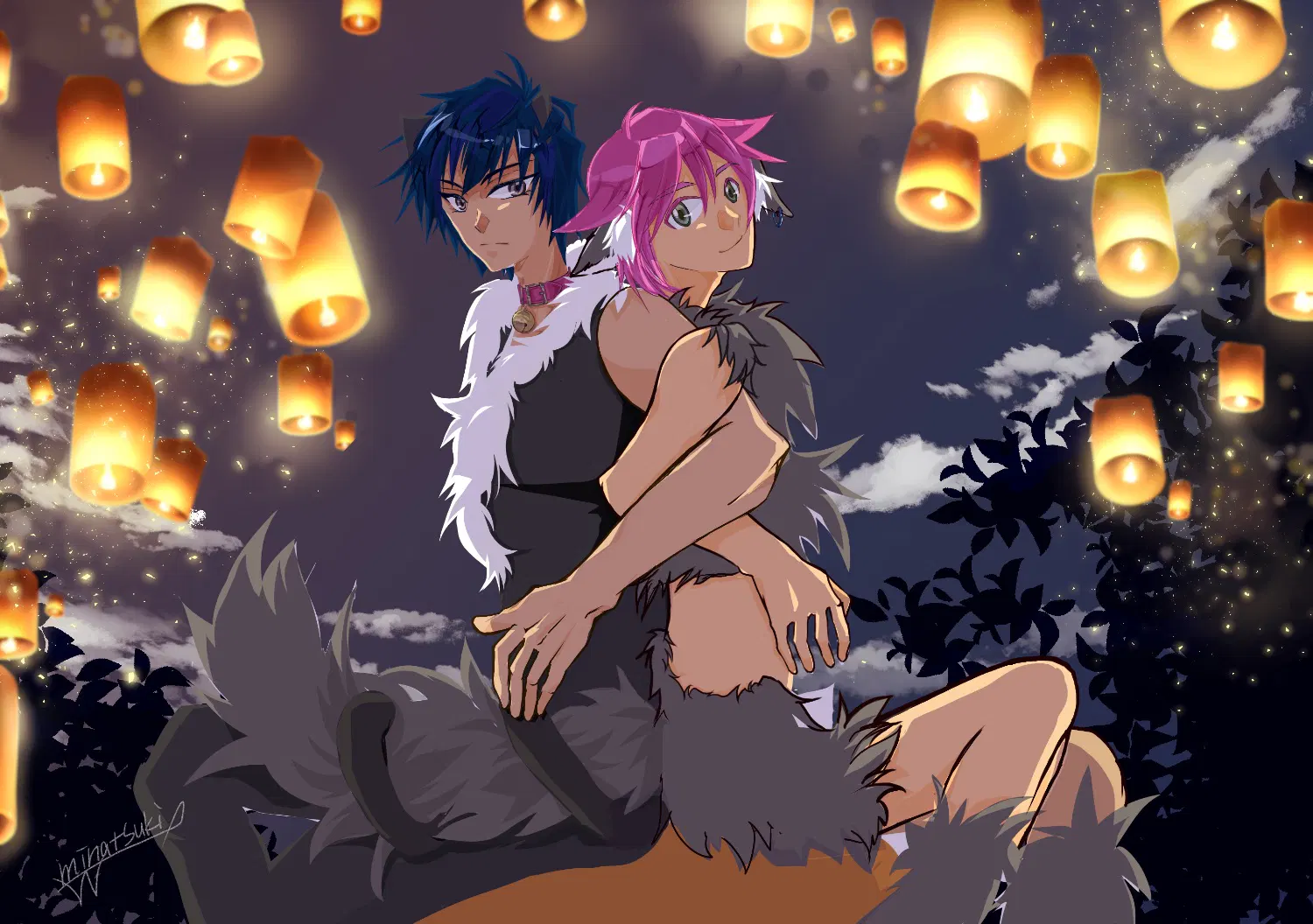 モデル(というか人物)はパワフルフューチャーズのハルキ(左の猫耳猫しっぽの子)とピグタ(右のピンク髪、狼耳と狼しっぽの子)。