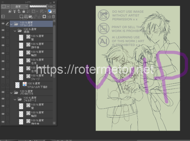 完成したぶんと、ハルキの衣装や表情が違うのは描きながら直したからです。