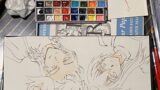 下書を水彩色鉛筆、線画はコピックマルチライナーのウォームグレー0.1。